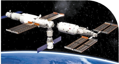 問天實驗艙成功對接于天和核心艙前向端口,微波雷達持續輸出高精度,百公里距離測角精度0.1度,完美助力精準交會對接。(中國航天科工供圖)