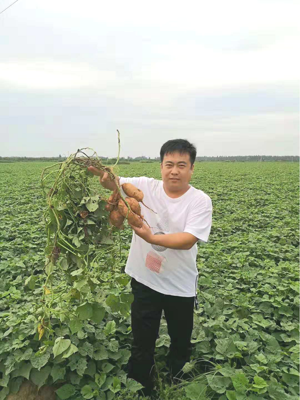 王廷強早年同大多數青年一樣,外出打工謀生,當過印刷工,開過飯店,賣過小吃,經營過飼料生意。他的家鄉廣宗縣馮家寨鎮是全國著名的童車生產基地,大量人力都從事童車生產,造成土地大面積落荒,地租價格便宜。他從中看到了商機。2012年,他通過土地流轉租地30畝,開始種植核桃。為充分利用苗木生長期土地,他決定在樹間套播紅薯。隨著種植經驗的增多,他發現廣宗沙土質的土壤的確很適合紅薯種植。但套播模式并不好,于是他打算專注發展紅薯特色種植。他對于紅薯的深厚熱愛也是從那時開始。當時村里人還是種植棉花、花生、玉米基本啥都種點的散種模式。可他偏偏獨愛種紅薯,還種了那么多,村里對這種種地方式充滿了好奇。一開始的紅薯種植效益并不好,基本沒獲利,村里好多人勸他改種別的。他卻堅信種植紅薯可以掙錢,只是現在存在很多種植問題。他總結為三點,一是種植模式落后,成本高;二是紅薯品種差,價格低;三是種植技術落后,效益差。