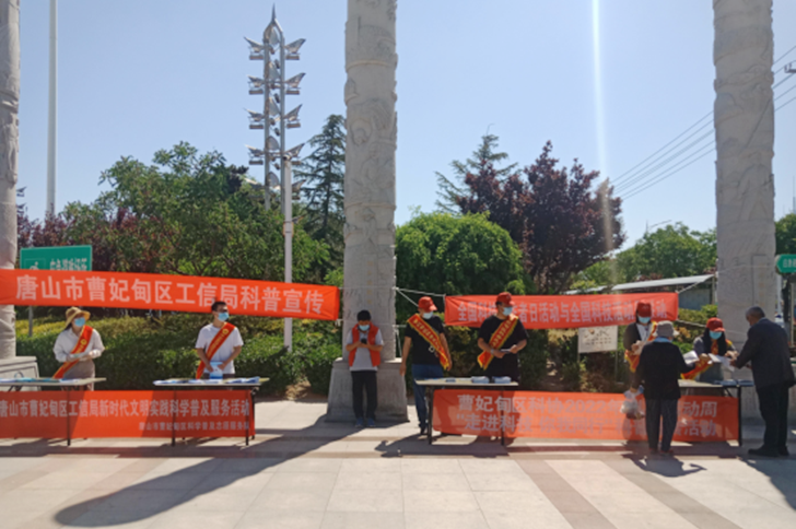 2022年“科技活動周”到來之際,為普及科學知識,弘揚科學精神,唐山市曹妃區科協會同曹妃甸區工信局,于5月27日在唐海鎮創業廣場開展了“走進科技 你我同行”科技活動周科普宣傳活動,組織科技志愿者深入唐海鎮群眾當中,廣泛宣傳科學防護新冠肺炎、科技信息、膳食營養搭配、健康生活、保障安全健康、保護生態環境等方面的觀念、知識、方法,讓廣大群眾形成科學、文明、健康的生活方式,助力弘揚時代新風。